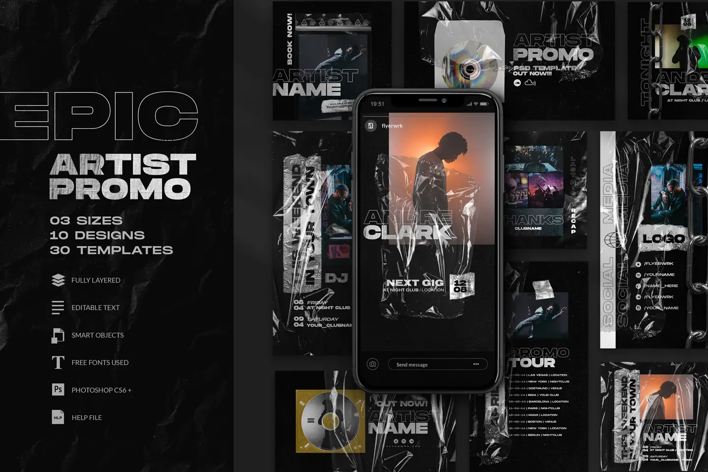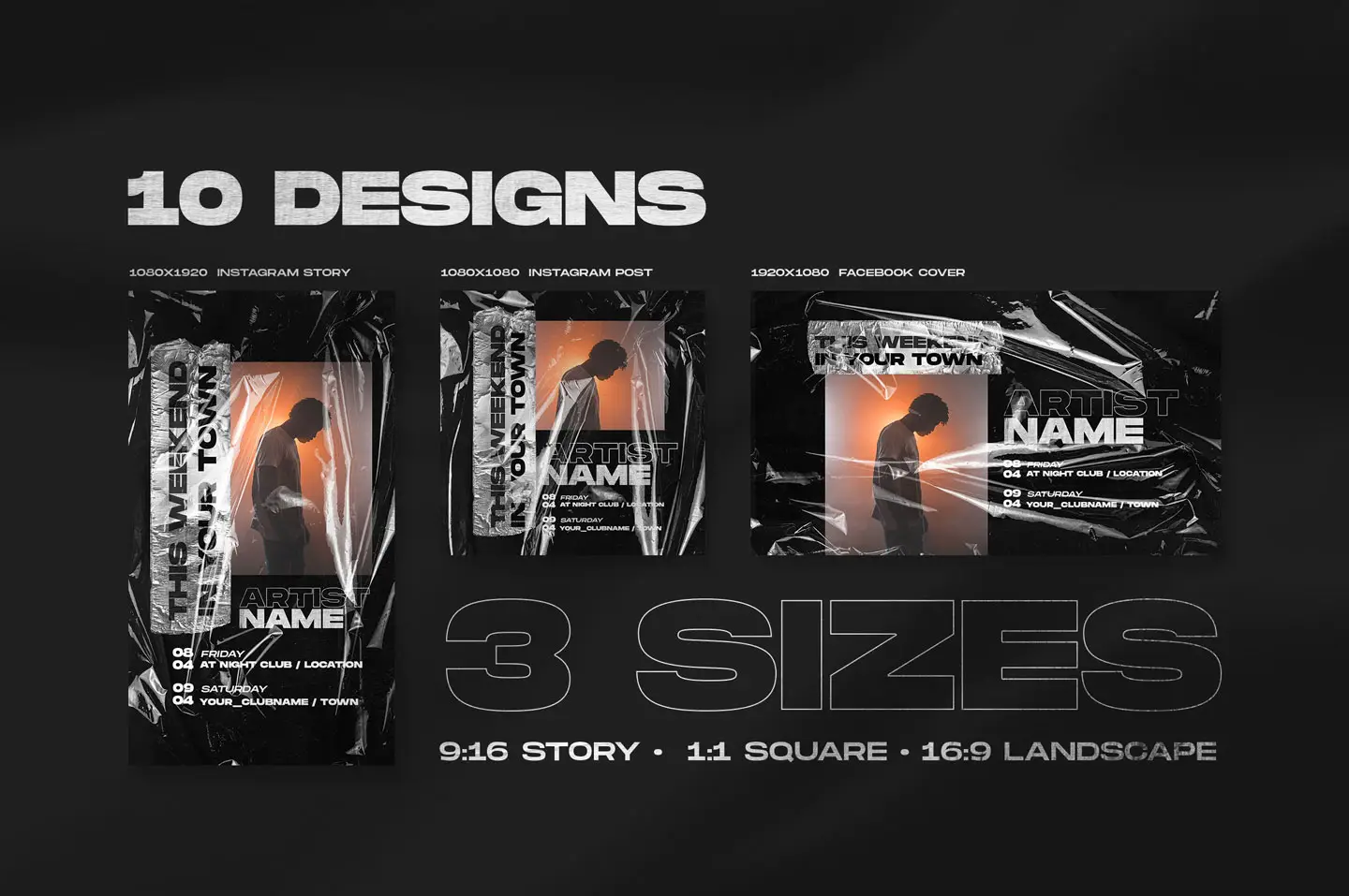 Templates built for fearless designers who want speed without looking generic. Plug in your type and artwork, swap colors fast, and export polished layouts for music, social, and branding projects in minutes.