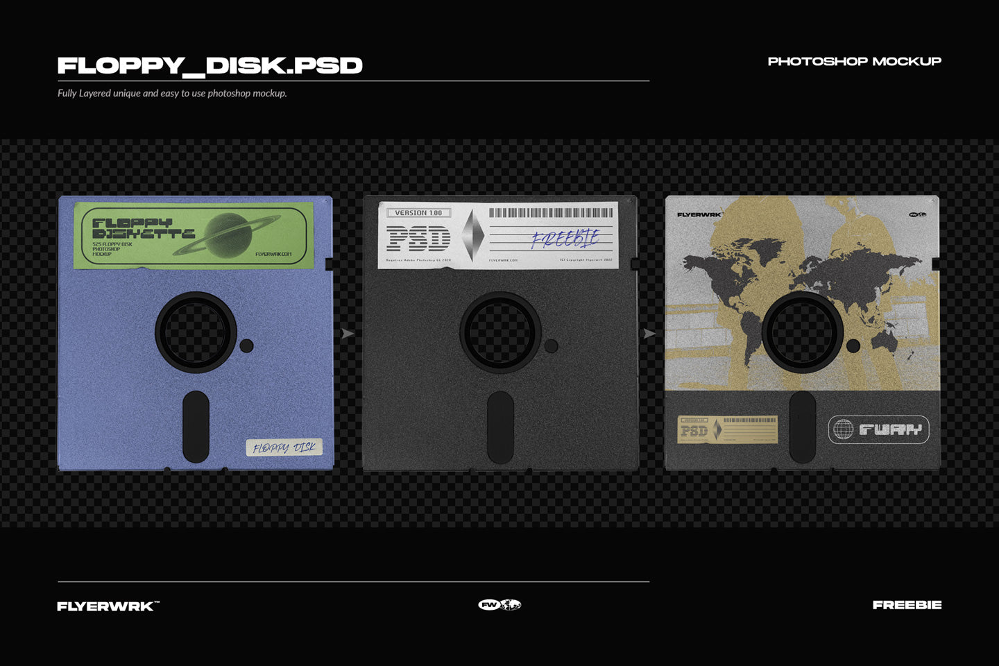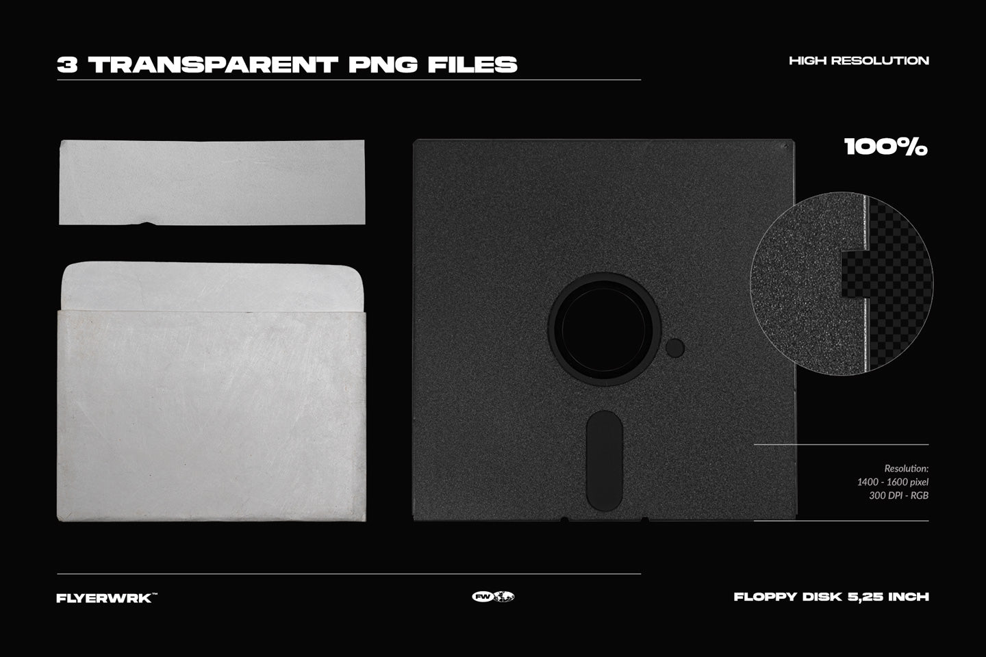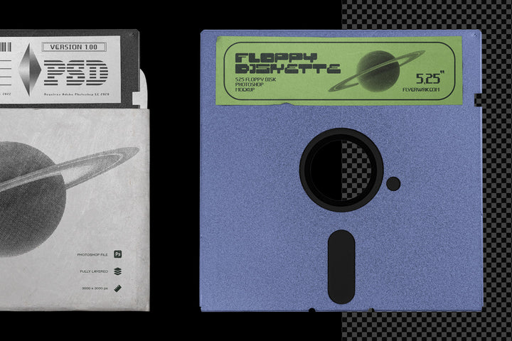 This mockup is built from a real photographed 5.25" floppy, so you get all the subtle texture and imperfections that make it feel authentic and not “too digital.”