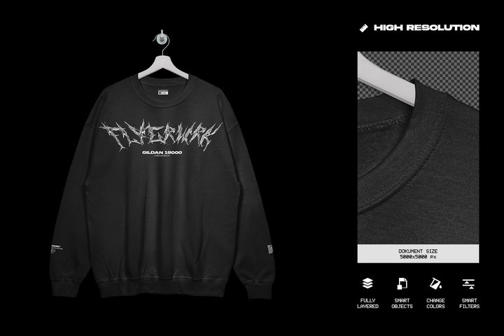This comprehensive package includes all four variations of our mockups, allowing you to present your designs in multiple contexts. Each mockup is crafted using genuine Gildan 18000 Crewnecks, photographed meticulously to ensure the highest quality. Features include the ability to toggle used look and cracked ink textures, giving your mockups a worn-in feel that adds character and realism to your presentations.