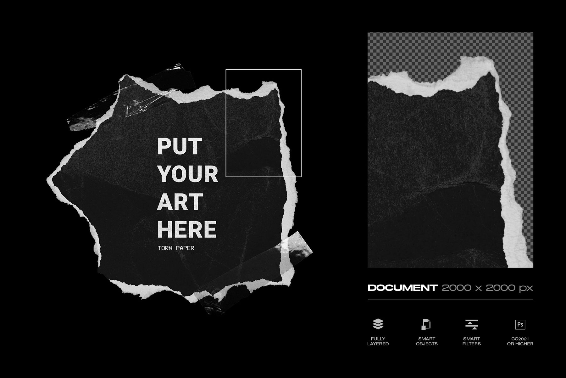 Bring that raw cut-and-paste look to your designs without touching scissors or tape. This Torn Paper Collage Mockup is built from a real photographed paper scrap with authentic wrinkles, rough torn edges, and subtle texture that instantly gives your artwork a handmade, editorial feel.